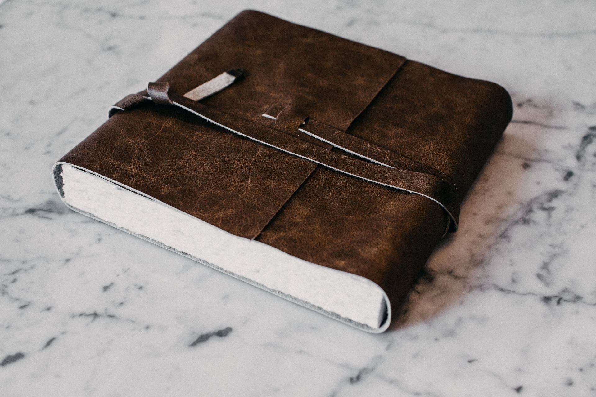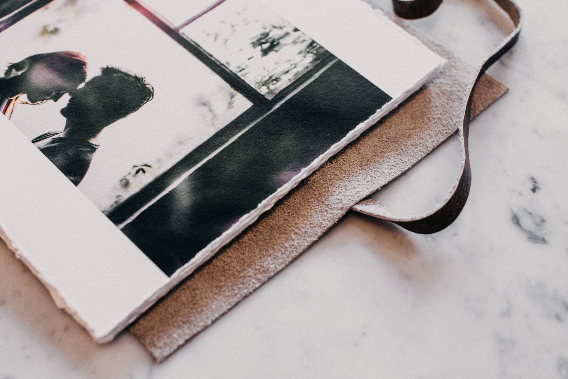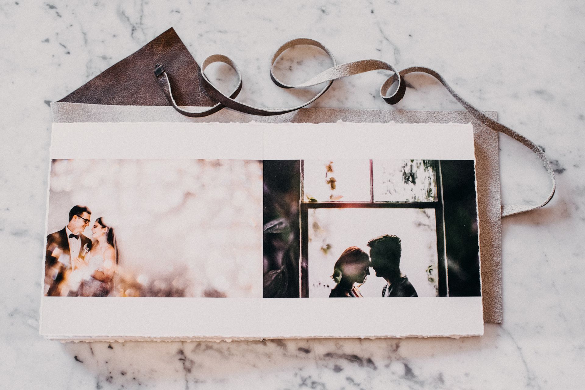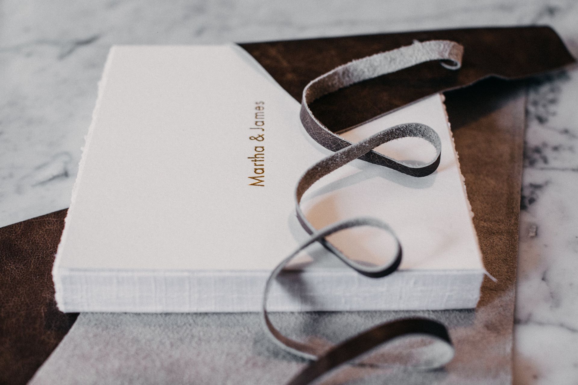Dit is geen alledaags product - het bestaat uit een zachte, leren hoes die met de hand gescheurde fine art prints op katoenen rag-papier omhult, waarvan de voorpagina prachtig in goud is gedrukt. Een rustieke leren riem wikkelt zich eromheen om het album bij elkaar te binden. De hoes van deze journal is namelijk niet vastgemaakt aan het blok pagina's.